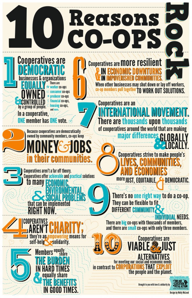 If you're a Shareable reader, then you probably already know that co-ops are celebrated on a regular basis around these parts. But, since October is officially Co-op Month, we thought we should point out why co-ops are so celebrated… with a little help from TESA's "10 Reasons Co-ops Rock" poster.