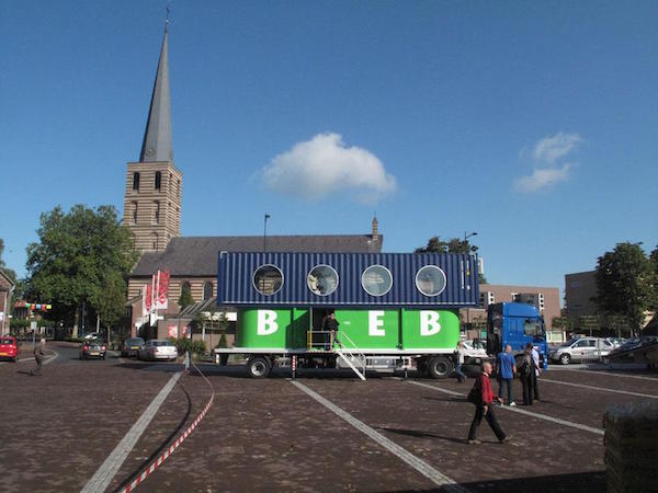 The BiebBus in the Netherlands is a fantastic, expanding library that houses 7,000 books on the bottom level and has a transparent-bottom reading room for children—crafted from a repurposed shipping container—on top. The brainchild of Den Hollander, the library is built on a truck trailer so it can easily move from village to village, serving 20 primary schools that aren’t able to afford a library of their own.