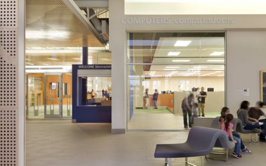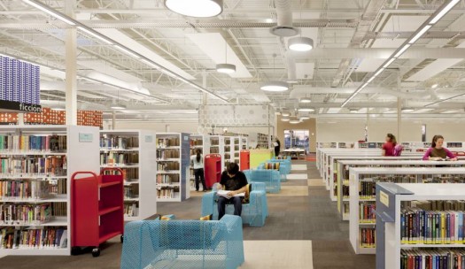The cavernous space now houses an auditorium, computers lab, classrooms and meeting rooms, and adult and teen reading lounges — not to mention hundreds of thousands of books — earning it the title of the largest single-story library location in the U.S.