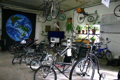 The banging competes with Indy-rock music, which is blaring from speakers in the front part of the building, where the bike-repair cooperative is located. There, four bike stands sit vacant, ready for customers to use to build and fix their own bikes.