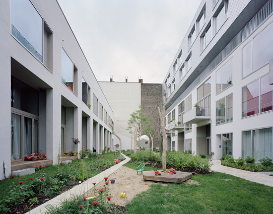 The community garden/courtyard at Module Project Zelter. Photo credit: Wettbewerbe Architexture.