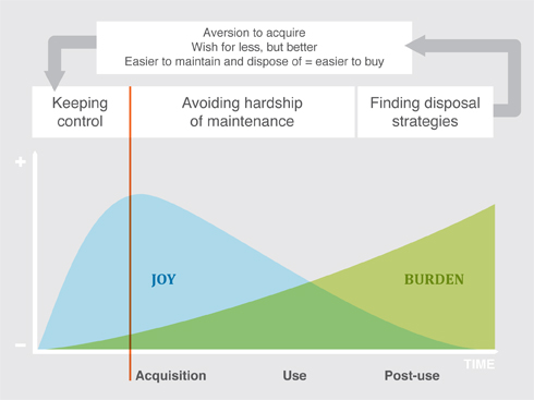 Social networks play an important role in the filtering of the constant flow of new data; according to a recent study, 48% of young Americans find out about news through Facebook. Likewise, strategies for streamlining belongings are being applied to the physical world, where quality and access are ruling over quantity and material possessions. A U.S. research respondent consciously subscribed to a “less stuff, but better stuff” lifestyle, making decisions to acquire, consume, and keep only the things that he saw to be of value and never a burden.