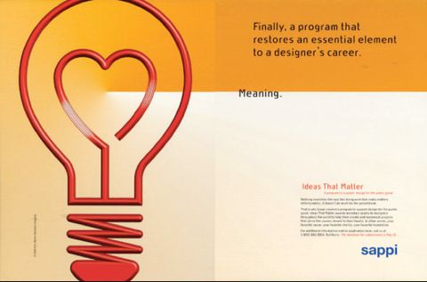 Despite all the work I’ve done, I’m not sure I’m known for projects except maybe the Ideas that Matter program for Sappi. Sometimes people tell me they remember a campaign I did, but It’s more likely I’m known for breaking down some boundaries – between art and design, design and business, women and leadership roles, for launching the first design department in a major advertising agency, for giving it all up and moving to New York, for marrying communication design with sustainability so long ago, and now for launching the new MFA program at SVA in Design for Social Innovation.