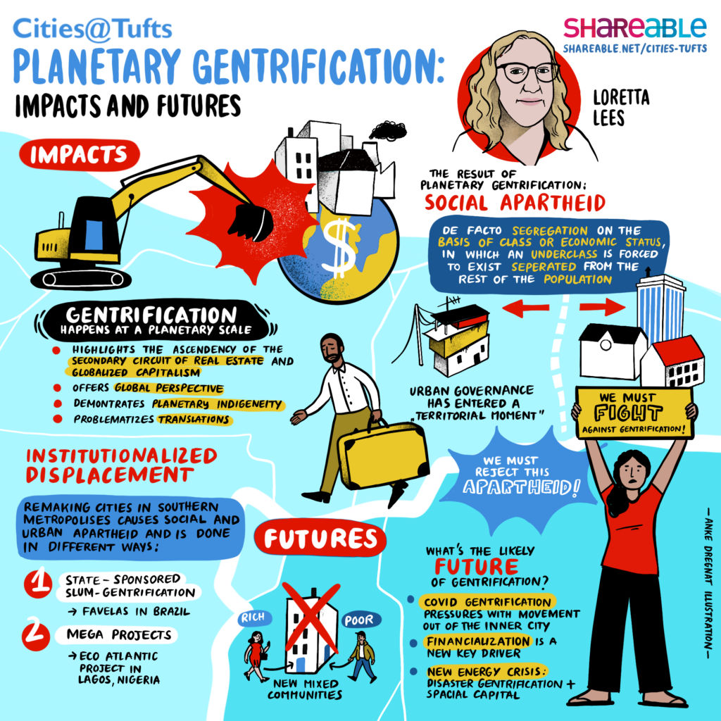 Below you’ll find the graphic recording, audio, video, and transcript from “Planetary Gentrification: Impacts and Futures” presented by Loretta Lees on October 19, 2022.