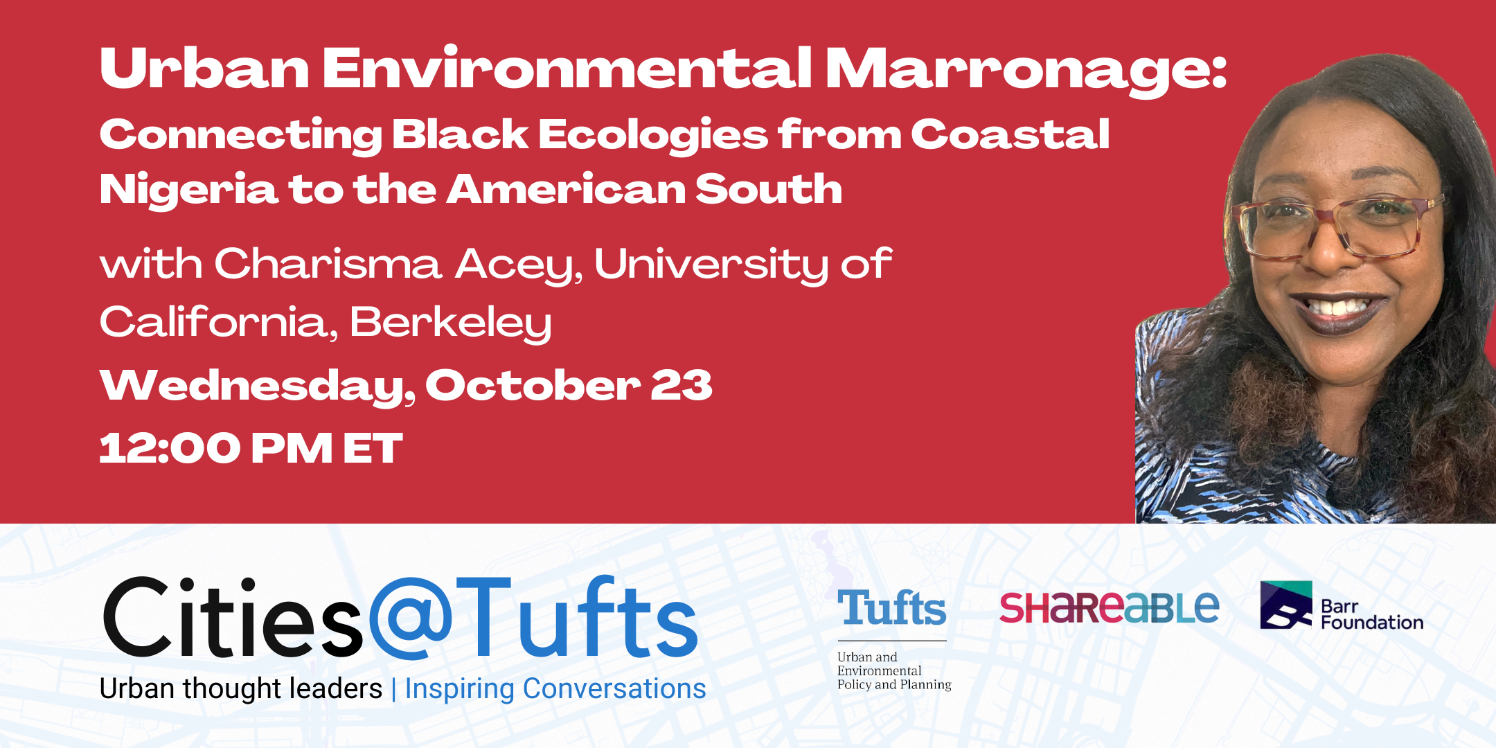 The Fall 2024 colloquium features topics like the connection of Black ecologies from coastal Nigeria to the American South, climate and energy policy decolonization, and how we can reimagine urban planning. Cities@Tufts lectures are presented by urban thought leaders from all around the US.