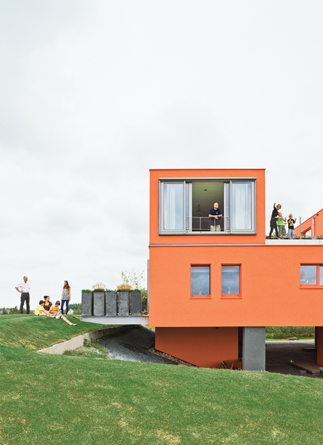 The strikingly sculptural bright orange building, reclining in the flat Dutch landscape, accommodates five families under a single, stylish roof. And there’s not a whiff of carob in the air. Step into any one of its five apartments and you are convinced that you've entered an independent piece of architecture entirely. Though they vary in size (the largest is 3,200 square feet), each unit has a panoramic view of the surrounding landscape and its own distinctive layout, decor, and, of course, inhabitants. The group ranges from a business manager to a sports coach to an art historian.