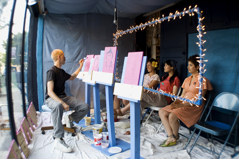 Want some waffles with your art? The Waffle Shop is a cafe and live-streaming TV channel that serves a diverse audience of late night club-goers and locals in urban Pittsburgh. It's run by Jon Rubin, an artist and professor of social practice at Carnegie Mellon, and his students. It's a fascinating experiment in connecting with "nontraditional" arts audiences and encouraging strangers to talk about diverse topics in a performative environment. Both staff and visitors host TV programs in the spaces that range from interviews to game shows to salon chair ministries. The Waffle Shop team also runs other projects out of the space, including the Conflict Kitchen–a take-out place that serves food from countries that the U.S. is in conflict with (currently, Iran).