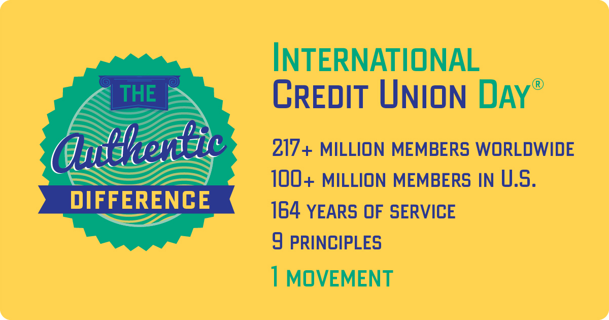 To celebrate their commitment to these principles, the theme of this year's International Credit Union Day is "Authentic Difference."