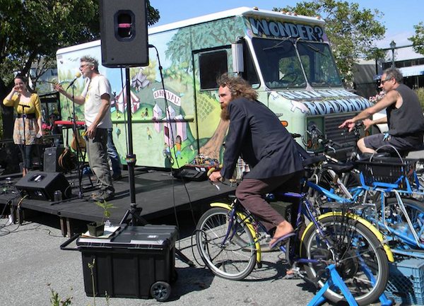 A solar- and bicycle-powered stage kept participants busy. Photo: Veronica Ramirez