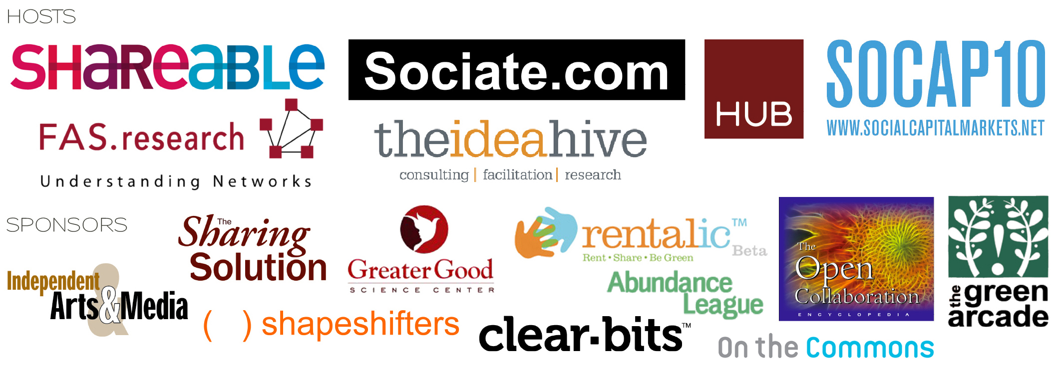 FAS.research, The Idea Hive, Sociate.com, Hub Soma, SOCAP10, Shareable.net