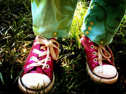 We spend a lot of time with the kids doing things like this. Just playing. Or walking. Taking long days’ adventures, exploring where this or that dirt path leads, or following the creek until the brush becomes too thick to navigate. We fill our time with things that are free, versus the weekends we used to have, when we would do a lot of driving to this or that big box store for “necessities.” At the end of a typical weekend, we would have run a lot of errands and spent a fair amount of cash, but surprisingly little fun would have been had. Maybe I would have wasted an hour or so (and a lot of money) getting a manicure and pedicure, something I used to think as a sort of business expense. I wear thrift store clothes now, and I think I’m on the annual pedicure schedule. I miss it less than I thought I would.