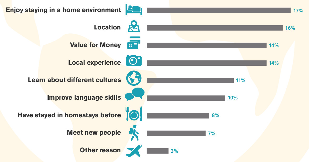 "Enjoy staying in a home environment" ranked highest among Homestay.com guests' stated motivations. (Homestay Index)