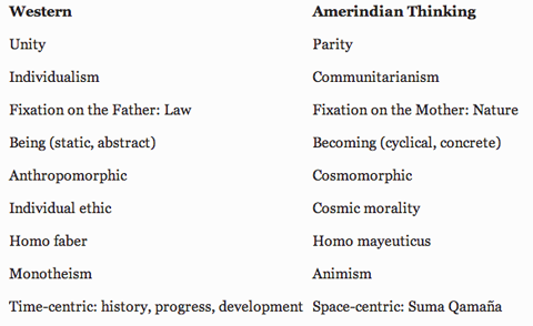 Helfrich: In essence, what’s the difference between the Andean conception of el Buen Vivirand Western thinking?