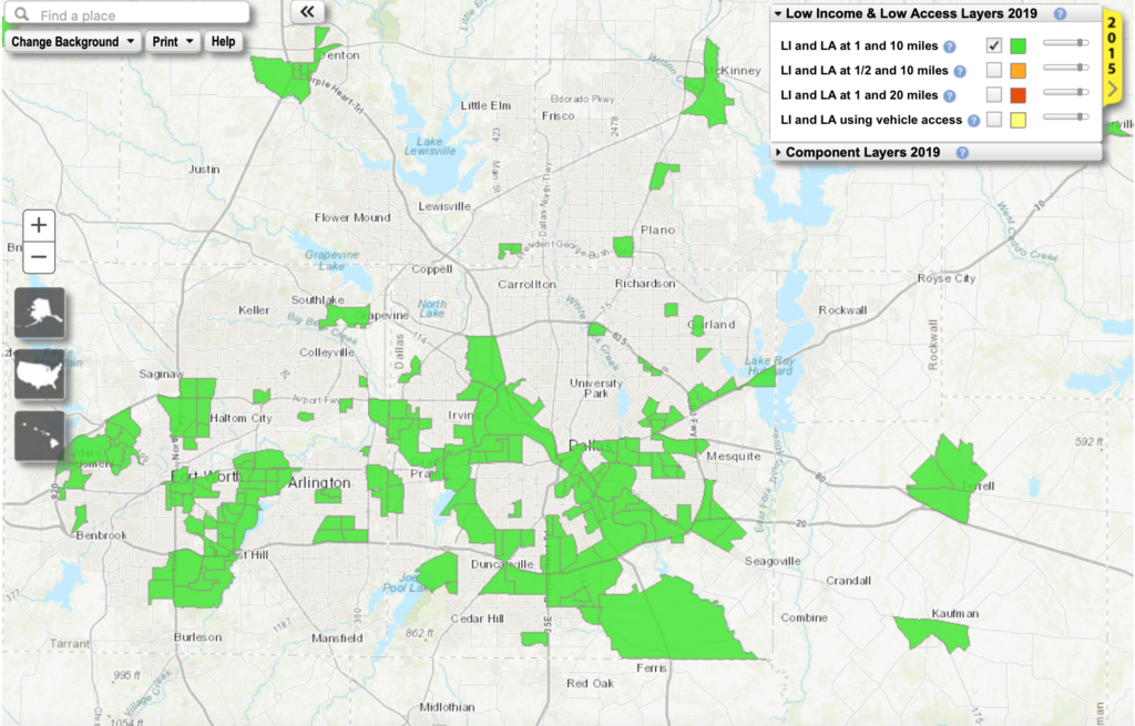 In the Dallas Fort Worth area, access to healthy food is a major equity problem that local governments have yet to adequately address. An undersupply of healthy food options mixed with an overwhelming availability of unhealthy food sources disportionately affect the wellbeing of low-income communities and Black and Latino neighborhoods.