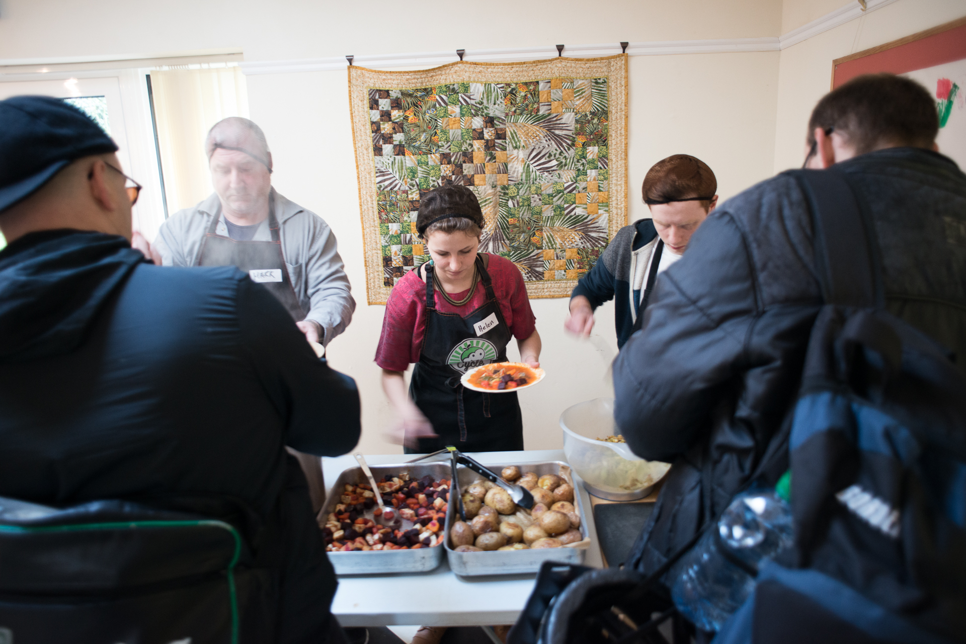 Both models have volunteers where people participate at different levels — some come once and some volunteer every week. We do pay for our volunteers' expenses. In addition to picking up the food, they also cook, shape the social media for their hub, organize events and do fundraising. In return they develop experience in these areas. That's helped some of them with getting jobs.