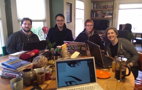 Lori Kane: I have a million. Here’s a big one for me personally. After running the coworking space for almost two years in our central Seattle neighborhood, my writer-self began longing for quiet and for a place our Australian Shepherd puppy could run off-leash, easily, every day. We began looking for places on Whidbey Island, and for a week I was full of guilt and worry about what us moving away might mean for the neighborhood and the coworkers in our space. The next week, a woman I never met before came to coworking. It turns out, she’s the partner of a friend of mine who used to work at Office Nomads. They needed a place to live and she fell in love with our house. They moved into the house in December just two days after we moved out, and they now run the coworking space. There was just a two-week break, over the holidays, and then Collective Self was back in business! I join them once or twice a month for coworking when I’m back in Seattle. I’m so thrilled they came into our lives. It was like magic.