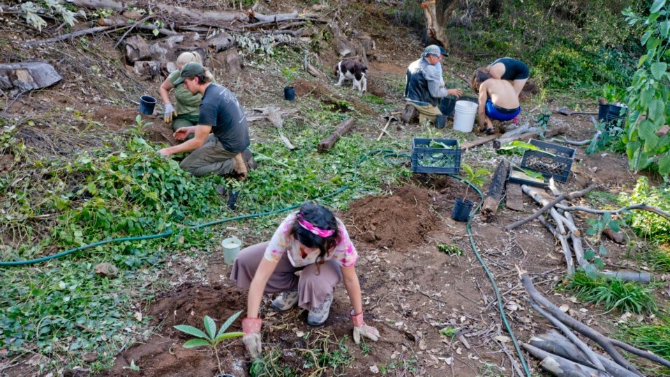 Volunteers work in the garden at Emerald Village Organization in November, 2012. (Photo: Love Bus Community)