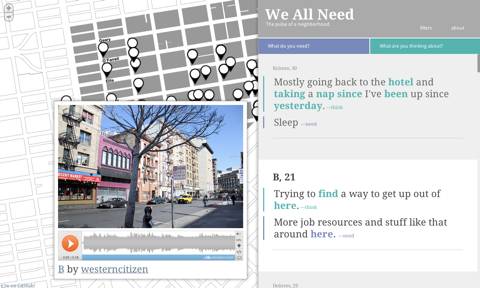 Summer of Smart is a project of Gray Area Foundation for the Arts (GAFFTA), a Bay Area nonprofit that describes itself as “dedicated to creating social consciousness through digital culture.” Aiming to foster a creative dialogue between the city’s Department of Technology and its developer, urbanist and social justice communities, Summer of Smart is an initiative to find data-driven solutions to some of San Francisco’s most pressing social issues. At the core of this collaborative initiative will be three 48-hour long hackathons over the course of the summer, bringing together developers, designers, community leaders, urban planners, journalists, and artists to prototype innovative solutions using public data. The three weekends will address specific civic concerns, with the first on June 25 focusing on community development and public art. The following two hackathons will address sustainability, transportation and energy, and public health, food and nutrition, respectively. A pilot "hack day" held by GAFFTA in November 2010 produced We All Need, a location-based microblogging project to solicit and map stories of the most urgent needs in the city’s Tenderloin neighborhood.