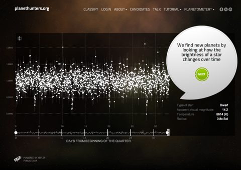 Sure. Planet Hunters is using Kepler data to prove that humans can find some planets that the current algorithms won’t be able to. As people are discovering planets through the Planet Hunters data set, then the people who are running the project take that data back to the Kepler scientists and do a cross-check of what has already been discovered by the algorithms. In that case, you have a humans vs. machines competition — it’s not trying to replace algorithms, but it’s trying to augment our scientific discovery with humans who are able to go through all that data.