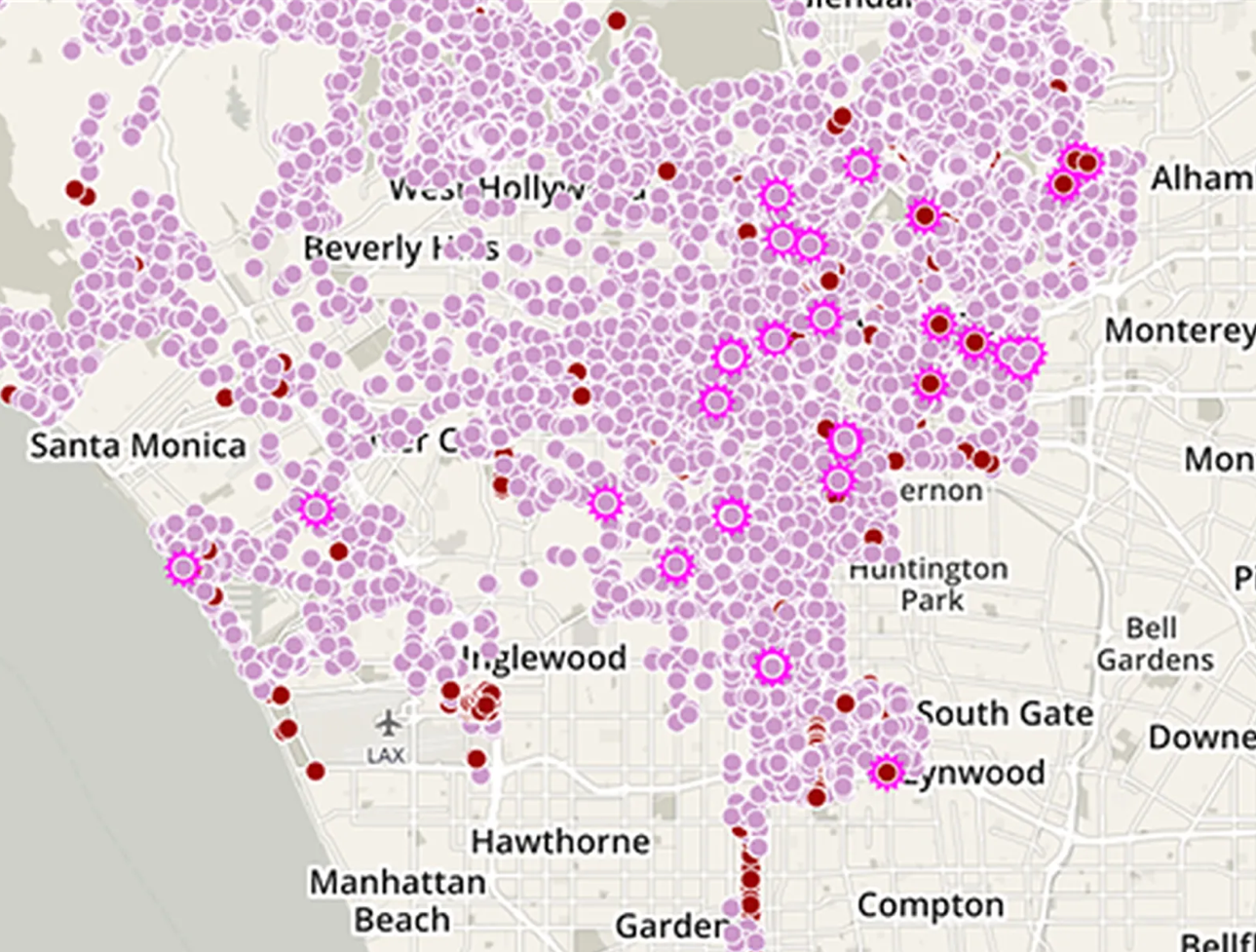 One of the first hurdles to addressing the issue was simply identifying it. For years, there was no central map or database that interested parties could use to locate (and subsequently develop) the vacant lots. That changed recently when Community Health Councils launched their project LA Open Acres.