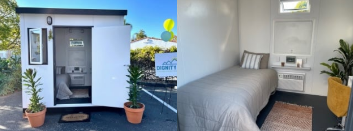 Aside from parks, the parcels have long been part of a vision by local organizations trying to solve the homelessness problem. Elizabeth Funk, Founder and Executive Chairman of Dignity Moves, leads interim supportive housing initiatives that have succeeded in other California cities. The tiny portable houses can be set up very quickly, using vacant land, and are temporary, so when someone buys the property and it’s developed, they can be relocated with a forklift. The only thing they need? Permission. She says it’s an easy ask that’s held up by bureaucracy. The city, to her knowledge, already has money set aside for utilities on the properties, and many are already set up for that.