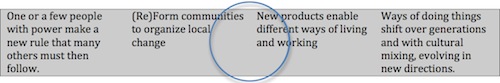 ). Organizing in this way remains on the intentional side of social change. But, because these strategies are not about ruling but agreeing (which is part of their effectiveness – the changes stick), their scale remains small, or at least, they can only be done one community at a time.