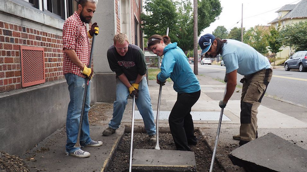 With depaving, many hands make lighter work, so call in help from the community. Credit: Depave