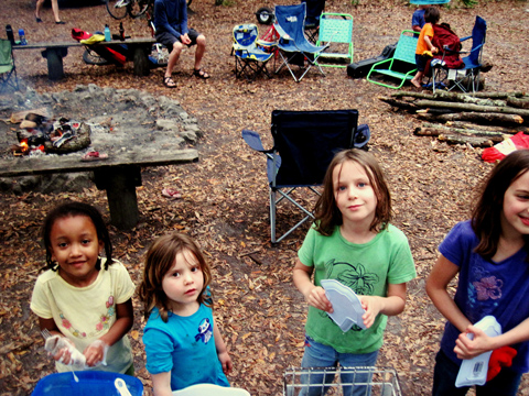 We keep saying that we’re going to put a little notebook into Party Box, so that the box can tell tales of where it’s been and what it’s done. I’m honestly not sure if anyone will ever get around to this, and it might get lost or misplaced anyway. Even if it never happens, though, when I look at Party Box, I remember birthday parties and camping trips gone by. I have a favorite weird mug (glitter green plastic with a cheesy dolphin) that I always try to drink out of. I see my daughter washing Hawaiian-shirt-shaped dishes in a bin of soapy water in the woods. Just try getting sentimental like that over a pile of dirty paper plates.