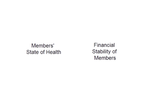 Note: The terms you write down should refer to measurable quantities, even if you can't measure them accurately. In this example, I wrote down "members' state of health" as the main concern of the members and "financial stability of members" as a main reason why they founded the organization. Don't write down the main process that you are concerned about (such as "preserving members' financial stability") because this is what the entire graphic will be about.