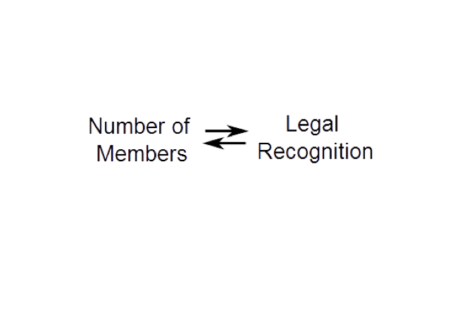 In this case, the feedback loop between more members and legal recognition is not yet really working as desired. Although the number of members is growing, it is not yet at a scale that would really make a difference in terms of political clout. Thus, one key issue would be to make sure that the organization is doing all it can to attract new members, and perhaps to find new approaches to ensuring that it does obtain better legal recognition.