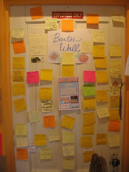 Right now you can make a number of exchanges using the wall. Ellen will do some proofreading or editing for you if she can borrow your truck for an hour. Heather, a doula-in-training, will provide free labor support in exchange for experience toward her certification. Mike will fix your bicycle for some moped parts. And if you’re a business lawyer, Omer and Dave would like to trade you some waffles for your services.