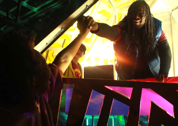 Adding music to the mix is always a good idea. Here, DJ Mike Clark gets some appreciation from a swapper.