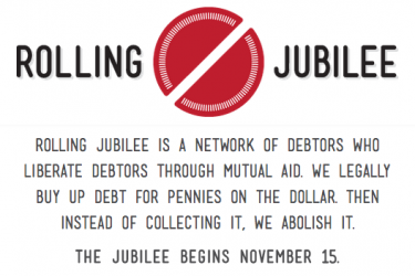The rolling part of the Rolling Jubilee- this is a gesture of mutual aid, and if you benefit from this gesture of mutual aid, you can maybe do what you can to help other people benefit, whether that means giving a few bucks or organizing a benefit concert or something where you live. The idea is to pay it forward.
