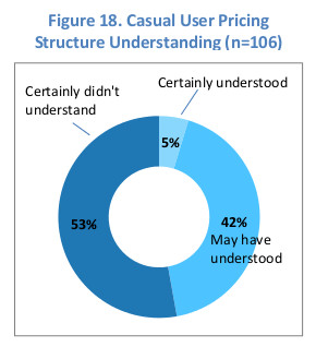 At least 53 percent of casual users surveyed appeared to have misunderstood the pricing structure. (Shaheen, Christensen, and Viegas de Lima, Bay Area Bike Share Casual Users Survey Report)
