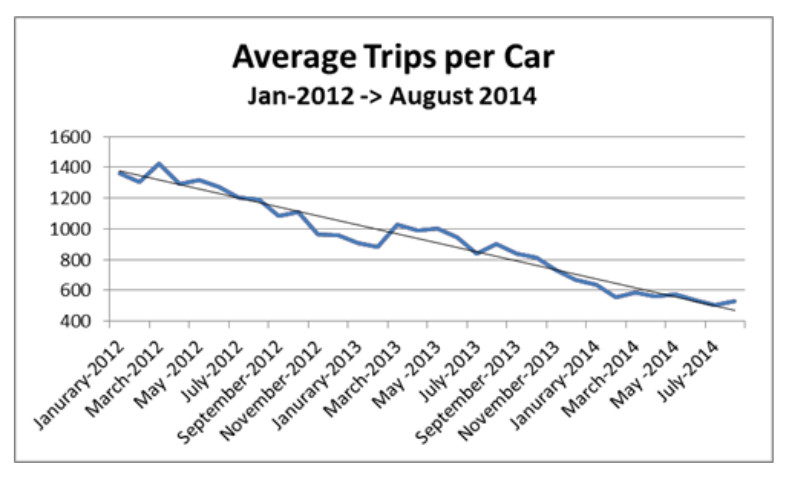 The rideshare revolution is crippling the taxi industry. That, at least, was the message delivered by Kate Toran, Interim Director of San Francisco Municipal Transit Agency's Taxis & Accessible Services Division, at a presentation before the SFMTA Board of Directors last week. Toran cited a sharp, steady downturn in taxi use in San Francisco over the last two years, from 1,424 average trips per month in March 2012 to 504 in July 2014, a steep 65% decline. She cited additional concerns, including the impact of ridesharing on the environment and on accessibility. The former is yet unmeasured; regarding the latter, Toran pointed to a decline in wheelchair trips and reduced interest in wheelchair ramp medallions. In response to the above, she called for a re-evaluation of all relevant regulations and a joint study with the California Public Utilities Commission (which regulates the state's ridesharing industry) regarding the implications of taxi-rideshare competition.