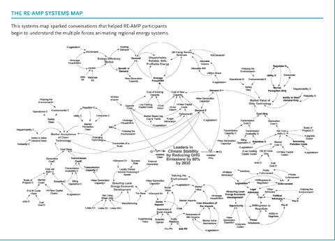 - Start by understanding the system you are trying to change. RE-AMP began with a year-long systems mapping process, which helped the network to agree upon a collective goal of reducing energy emissions by 80 percent. The shared map also gave participants insight into the four key levers necessary to change that larger system. From there, the group worked backward to design working groups and action plans with specific targeted goals, which were then used to coordinate and align member action and funding.