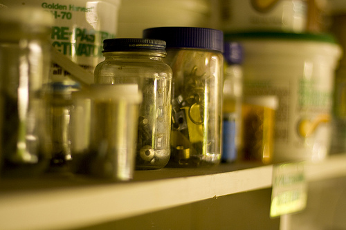 Shelves help organize clutter in order to conserve space and reduce waste. Photo credit: Rob Marquardt. Used under Creative Commons license.