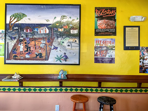 Art and posters on the wall at Tap Tap, a Haitian restaurant in South Beach