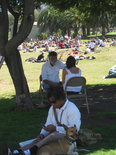 One afternoon when we were at Dolores Park, I was handing out fliers on the hill and handed one to a guy on his cell phone. He interrupted his call to ask me about what we were doing and then got back on with his friend, “This is the coolest thing. This chick just came up and said she’d listen to me.” He got off the phone and kept asking me, “Will you really just listen to what I have to say?”
