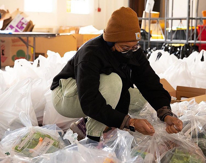 Nyhart says that when they first started packaging and delivering boxes, the team underestimated the amount of manpower needed for such an operation to run smoothly. One of their first efforts took place back in January 2021. At the time, they were still worried about the potential spread of COVID indoors, so they packed boxes outside. The cold weather was particularly unforgiving and before they had time to finish their work, drivers began arriving expecting to load and deliver food to waiting families.