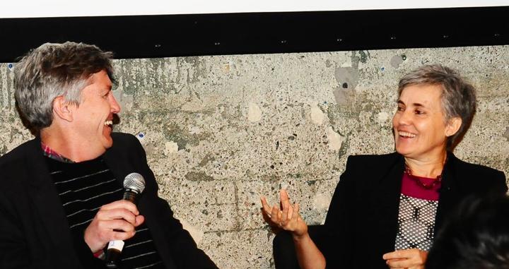 Steven Johnson and Robin Chase share laughs at Mesh2013. Credit: Lisa Gansky.