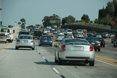 In Orange County, California, the freeway features two carpool lanes and six regular traffic lanes. Photo credit: Ernesto Andrade. Used under Creative Commons license.