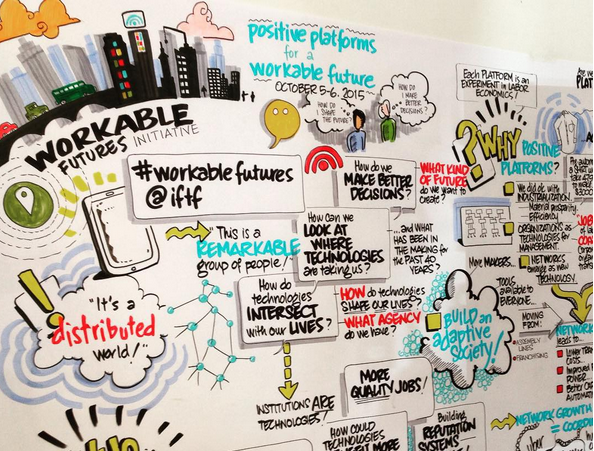 Informed by nearly 50 years of research on technology, economics, and the transformation of work, Institute For The Future (IFTF) in Palo Alto, California has launched a major initiative to help prototype “Positive Platforms”—platforms that not only maximize profits for their owners, but also provide dignified and sustainable livelihoods for those who work on them – and gave me the opportunity to coordinate the design of this event.