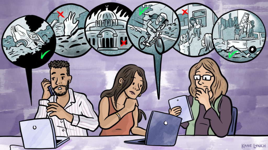 The episode tells the story from the perspective of several Verificado19s volunteers: Volunteer Ana Givaudan, found herself working with official rescue workers and the Navy in the heart of the “zero zones,” the areas that were mostly heavily devastated by the quake. Daniel Montaño, a bicycle volunteer, biked around the city as fast as he could to verify whether or not certain reports were accurate. Sandra Patargo is the person who started the original WhatsApp group and who also helped coordinate elaborate spreadsheets and a real time disaster map to be made available to the public.