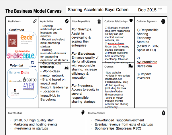 In my entrepreneurship courses, I encourage my students to embrace elements of the Lean Startup and to utilize a business model canvas. In the world of impact or social startups, not everyone supports their use — in part because the canvas does not have an element that focuses on ensuring impact — but I still find it a useful tool. As such, I figured I should practice what I preach and develop a business model canvas. Diego Fernandez of Impact Hub has provided input into its development and now I am sharing it with all of you. If anyone feels up to converting it to a Google Doc and sharing and editing with the community, I am totally open to that.