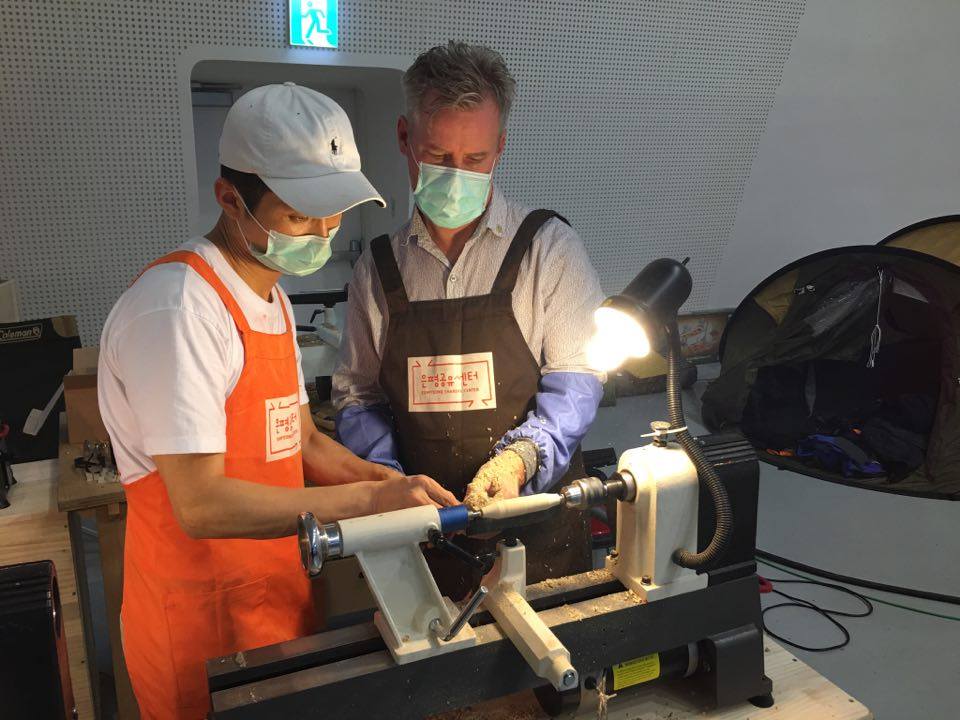 The talks were held alongside an exhibition that featured dozens of Seoul-based sharing enterprises including SOCAR (carsharing), i-baby (used kids clothing marketplace), Kozaza (homestays in traditional Korean hanok houses), 7 Pictures (matches artists with exhibit spaces), Share-US (shared living spaces for young people), and more. Perhaps uniquely Korean is The Open Closet, a nonprofit that rents formal clothing. Young adults make up 70% of their earned income. In Korea, you must wear a suit to a job interview even if the day-to-day job doesn’t require wearing a suit. They’ve served 30,000 people, keep very busy, and are planning to expand. Eunpyeong Sharing Center’s booth also stood out. It included a maker space where you could make wooden pens, all with the help of an expert lathe operator. I made one in about 15 minutes (with a lot of help). It was a relief to make something with my hands after a two-day cerebral workout across oceans and cultures.