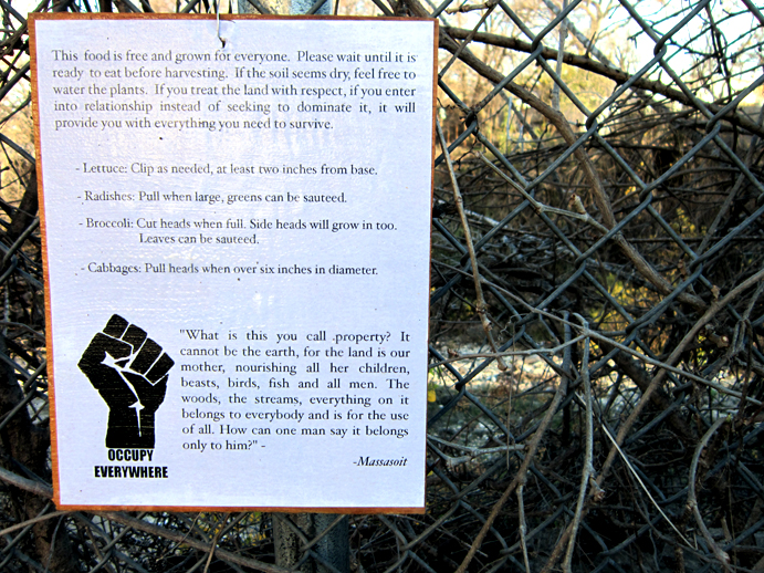 Photos of the handiwork of the Occupy Austin Guerrilla Garderners via Grow Food Raise Hell.
