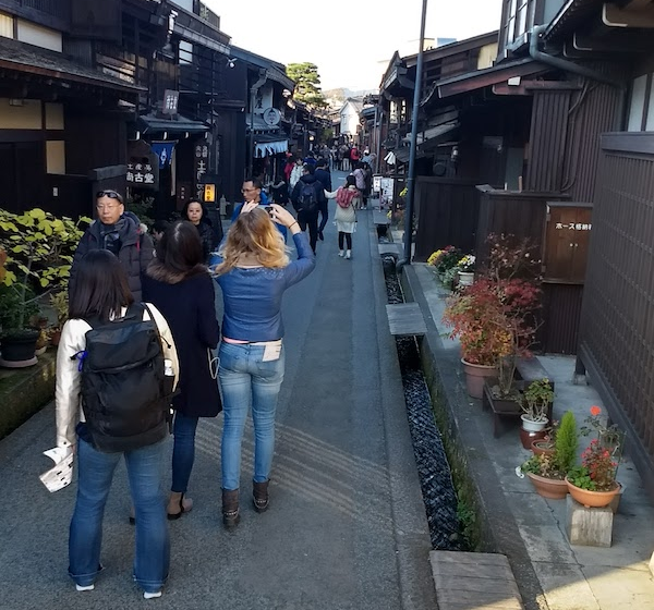 Strolling the streets of old town Takayama City, a historic city in the foothills of Japanese Alps whose 17th century center has survived wars, fires, and earthquakes. Its old downtown now caters to tourists, but with remarkable restraint.