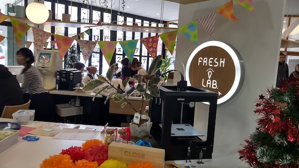 Afterwards, we took a bus to Fresh Lab in the suburbs of Takayama. Fresh Lab is a training center, shared kitchen, and makerspace in a grocery store. Why not?