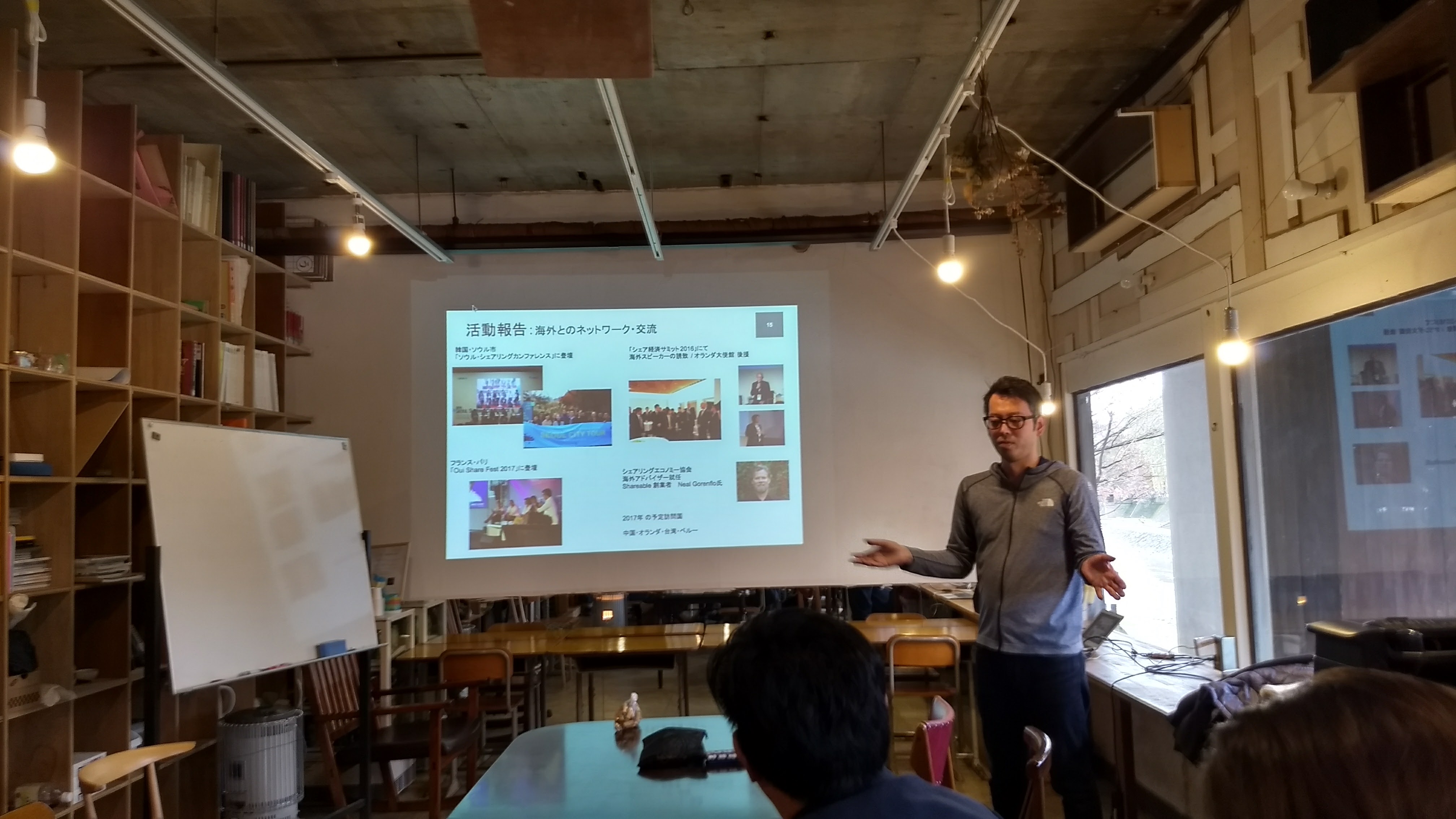 The next day we went to Co-Ba coworking walking distance from the temple. In the above picture, Takashi presents SEAJ's Sharing Cities work to Takayama City officials.